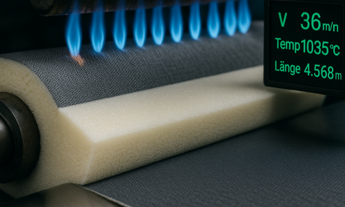 Flammkaschierung: Klebstofffreies Kaschierverfahren, ideal für die Verbindung von PU-, PE- oder EVA-Schaumstoffen mit Textilien oder Folien. Perfekt für die Automobilindustrie und Polstermöbelherstellung.